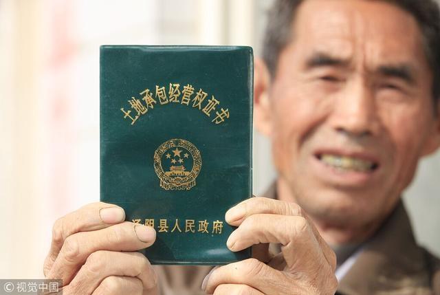2018年10月17日,河南安阳,农民展示农村土地承包经营权证。 图片来源:视觉中国
